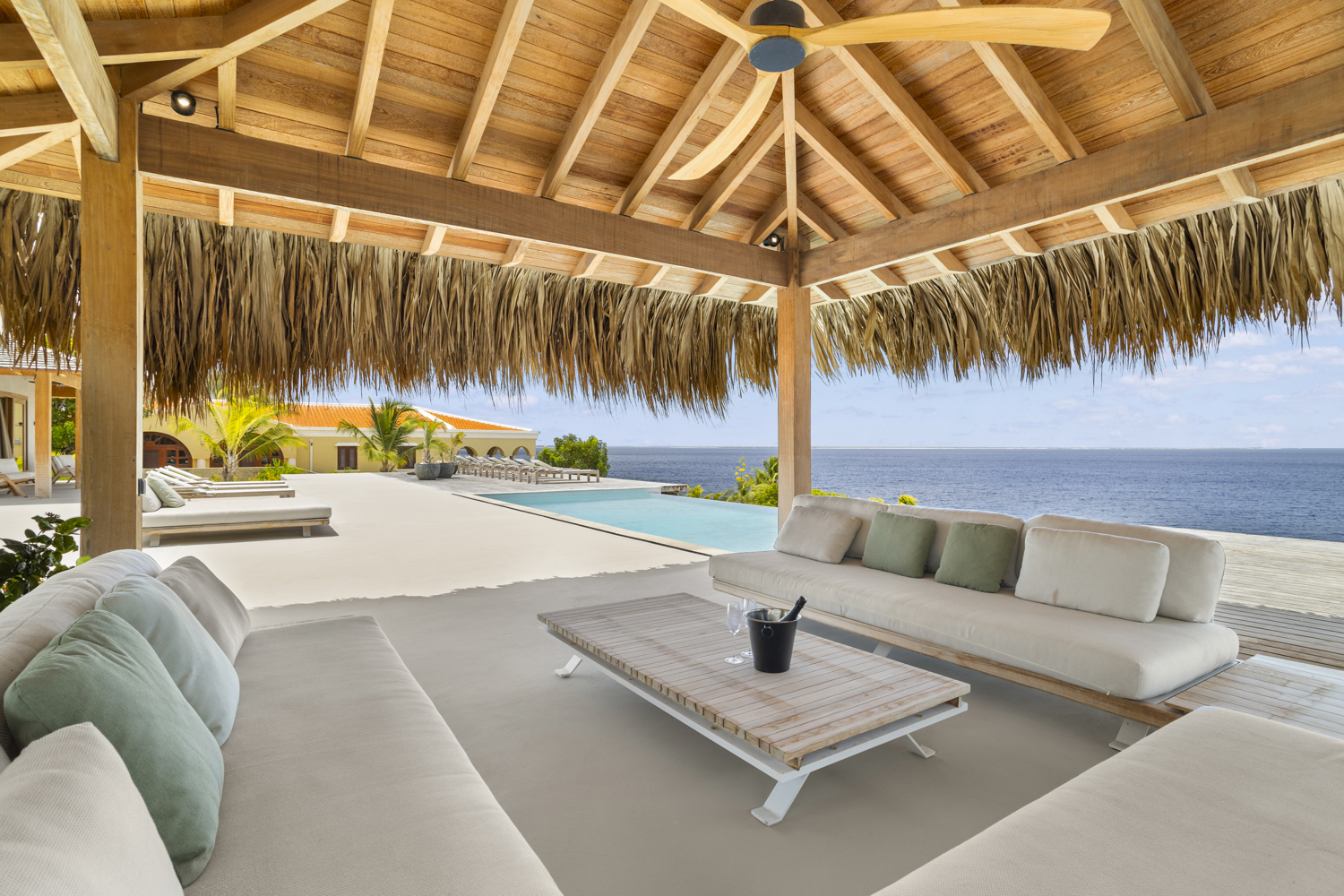 Immerse yourself in luxury at our oceanfront villa, featuring 5 elegant bedrooms with ensuite bathrooms. Enjoy versatile dining areas, a covered lounge, BBQ, and a large pool surrounded by a sundeck with beachbeds, all set against a stunning sea backdrop. Perfect for relaxation and entertainment, this villa blends comfort with the serene beauty of coastal living.